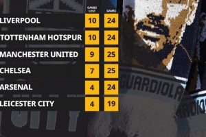 体育资讯9月14日讯 本轮英超将迎来焦点战曼市德比,据OPTA统计,自瓜迪奥拉16/17赛季执教曼城以来,球队在各项赛事25次面对曼联9次失利,输球场次仅次于对阵利物浦和热刺,具体榜单如下: