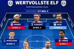 体育资讯12月31日讯 德转列自明日起可以与其他球队谈判夏窗免签加盟的球员阵容,这些球员当前的合同都将在2026年6月30日到期,弗拉霍维奇、格伊、于帕梅卡诺在列。