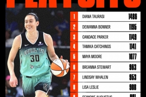 在比赛的上半场,斯图尔特超越了林赛-惠伦,以963分升至 WNBA 季后赛历史得分榜第6位 。
