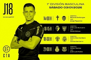 体育资讯1月2日讯 在圣诞假期后,本周末西甲联赛战火重燃,西班牙足协官方公布了当地时间1月3日开球的四场比赛裁判安排,其中,维克托·加西亚执法巴萨客战西班牙人的德比战。