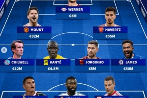 翼卫+后腰:奇尔维尔(斯特拉斯堡,1200万)、坎特(吉达联合,450万) 、若日尼奥(弗拉门戈,500万)、詹姆斯(切尔西,5000万)