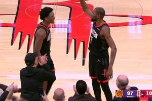 关键球!小贾巴里·史密斯抢断 杜兰特反击急停中投后倒地命中