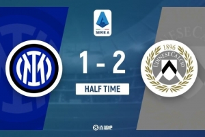 上半场比赛结束,国际米兰主场暂时1-2落后乌迪内斯。