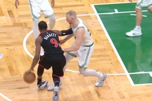 没升级!卡梅隆·约翰逊三分造科林斯犯规 裁判回放后吹普通犯规