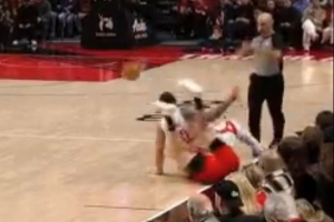 GIF-第二节杨瀚森和亚当斯的一次拼抢中两人都倒地