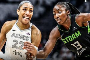 本场比赛,拉斯维加斯当家球星阿贾-威尔逊表现出色12投7中,砍下21分13板5助攻1抢断2盖帽。除此之外,她的队友杰基-杨取得了25分5板4助,替补席上的洛伊德也得到了13分。
