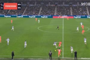亚马尔在中场拿球后,在短时间内躲过了四名球员的围抢,并且将球分给位置更佳的费尔明,可惜后者的传中最终没能形成射门。