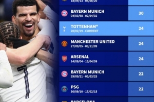 体育资讯1月21日讯 欧冠联赛阶段第7轮比赛,热刺在主场以2-0的比分战胜多特。尽管在联赛中表现不佳,但热刺在欧冠中却重拳出击。本场比赛之后,北伦敦球队欧战主场不败场次增加到24场。根据德国转会市场的统计,热刺欧战主场不败场次足以位居第3位。