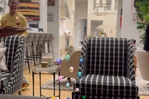 詹姆斯晒出自己全家为家中女厨师唱歌庆祝其生日的动态。