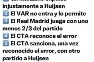 上诉委员会于本周四作出裁决,拒绝撤销赫伊森对阵皇家社会比赛中获得的红牌。该球员因在半场结束时绊倒奥亚萨瓦尔被罚下场,主裁判希尔·曼萨诺认定此次犯规构成明显进球机会。随后技术仲裁委员会在每周《复盘时间》分析中承认,对皇马中卫的处罚过重,本应以黄牌警告更为妥当。