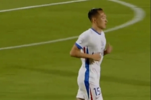 上半场补时阶段,武曦接队友传中,禁区内上演神来之笔,一记灵巧的脚后跟磕球破门。