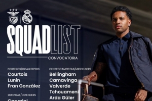 体育资讯1月27日讯 北京时间1月29日凌晨4:00,欧冠联赛阶段第8轮,皇马将客战本菲卡。赛前,皇马官方公布本场比赛大名单,维尼修斯和姆巴佩领衔锋线,贝林厄姆坐镇中场。