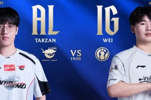 第一局前期双方打野同时来中,双方中单互换,随后小龙团Kael妮蔻抢掉小龙,Soboro兰博不T正面,iG少打多被AL打出2换3。先锋团Photic艾希贴脸空大,一箭射向iG基地,Soboro兰博TP落地成盒,AL打出0换2经济领先4k。