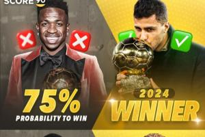s90表示,去年金球奖颁奖前3天,维尼修斯得奖的几率高达75%,但最后却败给了罗德里。而现在,登贝莱得奖的几率为73%,和去年的维尼修斯几乎一样。