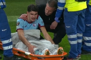 罗马诺:赫伊森右小腿肌肉受伤,预计伤缺5-7天将力争出战本菲卡