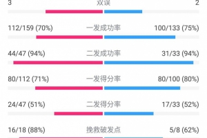 从数据中可以看到,德约科维奇的发球、总分、制胜分和接发等关键数据均处于下风,但在控制失误、破发点的关键球处理上遥遥领先于辛纳。