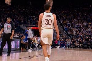 离场前,库里16中7得到23分1篮板2助攻1盖帽。