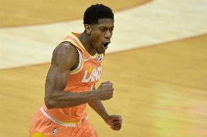摧枯拉朽!米切尔送妙传 阿伦腾空暴起单臂炸裂劈扣