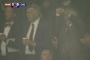 之后镜头给到看台,现场观战的弗格森爵士兴奋庆祝!