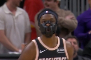 硬汉!奥孔武被布朗肘到&满嘴是血 回更衣室后又回来罚球