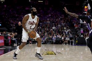 本场比赛,哈登首秀出战32分钟,投篮13中7,三分8中5,罚球4中4,拿到23分1篮板8助攻1抢断,正负值-14。