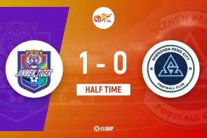 第45+3分钟,天津津门虎左路攻势,传中球被碰了一下来到后点,阿代米直接抽射破门!天津津门虎1-0领先深圳新鹏城↓