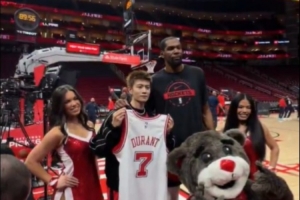 GIF-杜兰特送签名球衣+合影留念