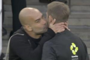 体育资讯09月22日讯 阿森纳vs曼城,瓜迪奥拉场边和裁判交流,还亲了一口裁判的脸颊!