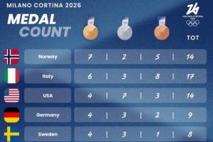 体育资讯02月13日讯 米兰冬奥会第6个比赛日战罢,孙龙在短道速滑男子1000米摘银,为中国队拿到本届冬奥会第4枚奖牌。奖牌榜上,中国队2银2铜排名第16。