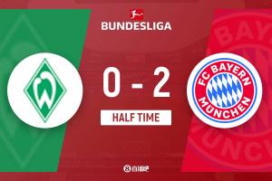 凯恩主罚点球命中,拜仁慕尼黑1-0不莱梅。↓