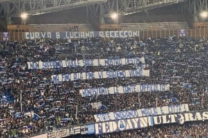 这是在那不勒斯对阵罗马的比赛前,马拉多纳球场B看台出现的一条横幅内容。 在那不勒斯被科莫队从意大利杯淘汰出局后,那不勒斯球迷发出的这一信息显然是对孔蒂及其球员们的坚定声援。