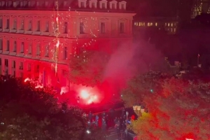2025年金球奖颁奖典礼在北京时间今天凌晨进行,登贝莱获得男足金球奖,巴黎球迷放烟花庆祝本队球员斩获金球。