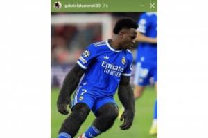 目前网上一张维尼修斯与猩猩的合成照片遭疯传,据悉是奥塔门迪兄弟加布里埃尔·奥塔门迪(Gabriel Otamendi)赛前在个人社媒分享的。引发争议后,他已经删帖并将账号设为私密。