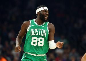 上半场凯尔特人中锋科塔发挥出色,出战17分钟,投篮9中6,罚球5中4,得到16分12篮板2助攻1抢断2盖帽,其中包括7个前板。