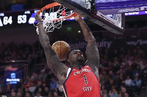 博雷戈:他看起来状态不错,步伐轻盈有力。今晚他打得非常侵略性,多次突破篮下。我看了几个片段,感觉他在突破时受到了很多身体接触。当锡安持球进攻时,裁判的哨声确实有些苛刻。但他展现了强大的力量和冷静的态度,我认为他在防守端也做得很好。总的来说,他的表现非常出色。
