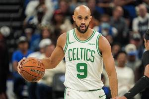 上半场比赛,凯尔特人后卫德里克·怀特进攻端里突外投效率不错,首节就砍下12分支撑起球队进攻,但还是顶不住对手攻势。