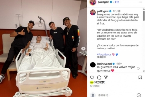 体育资讯9月25日讯 今日加维更新社媒,晒出自己手术后队友前往医院探望的合照,并配文: