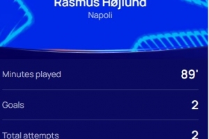 本场比赛霍伊伦梅开二度,2次射门进2球,赛后他也当选欧冠官方评选出的本场最佳球员。