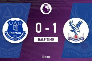 伤停补时2分钟。上半场比赛结束,埃弗顿0-1水晶宫。