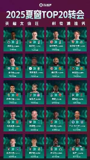 夏窗TOP10:转会费/新赛季数据