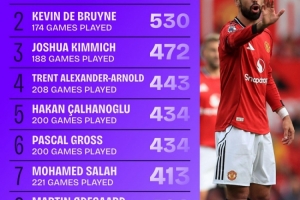 体育资讯10月10日讯 据Squawka统计,2019-2020赛季以来,B费创造557次机会,五大联赛同期最多。