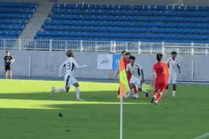 体育资讯10月10日讯 国足U22热身赛3-1击败泰国U23。比赛中,王钰栋遭遇对手飞踹犯规。