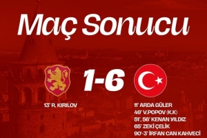 伤停补时第3分钟,卡维奇破门,土耳其6-1领先结束全场比赛。
