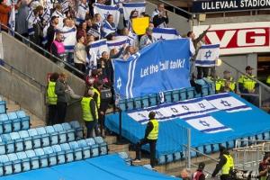 挪威5比0以色列比赛中两队球迷打出的横幅
