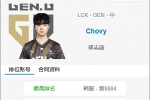 体育资讯9月4日讯 LCK前四战队GEN、HLE、T1、KT进入短暂的休赛期,休赛期间Chovy持续沉迷斗魂竞技,Rank分数降至钻一65胜点,来到第8884名。