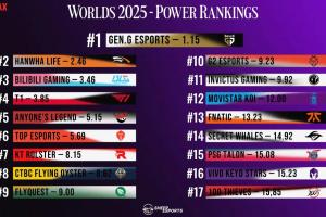 体育资讯10月13日讯 外媒sheep esports发布了S15全球总决赛战队实力排名,GEN、HLE、BLG、T1前四,TES第六、iG第十一