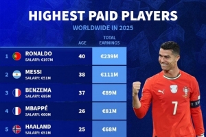 体育资讯10月18日讯 德国转会市场统计了球员2025年的收入,并列出榜单,C罗2.39亿欧居首,梅西1.11亿欧次席。