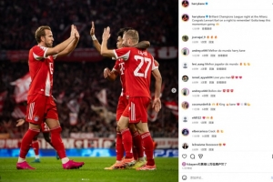 本场比赛凯恩破门,赛后他也在社媒晒照庆祝,写道:“安联球场的精彩欧冠之夜,祝贺卡尔度过难忘的一夜,让我们延续这样的状态!”