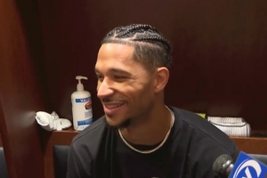 当被问及今晚在19分钟内抢下14个篮板的表现时,哈特表示:“我知道球队今晚的进攻会有些不稳定。”