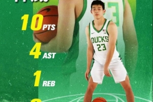 北京时间今天上午,林葳在俄勒冈大学vs犹他大学的季前热身赛中迎来NCAA首秀。